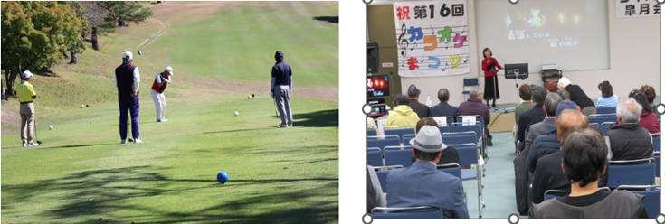 ↑24年10月ゴルフ交流会 ↑25年3月カラオケまつり (於:能勢カントリー倶楽部 99名参加) 於:ダイハツ年金基金会館) うち75歳以上グランドシニア50名参加 6年ぶりに開催されました。 |